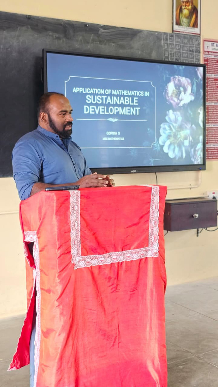 The 17th PG Colloquium oraganised by the postgraduate department of Mathematics was inaugurated today. Ms Gopika S of 2nd M. Sc Mathematics delivered a lecture on 'Applications of Mathematics in sustainable development'.