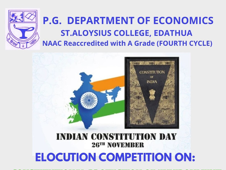 With the winners of the Elocution Competition organised by the Postgraduate Department of Economics on 26/11/25 as part of the National Constitution Day celebrations. Winners First Prize Alex S. Mathew III BA EnglishSecond Prize Anugraha Aajikumar II B.Sc. (Honours) Mathematics Third Prize Melvin Sam III BA English