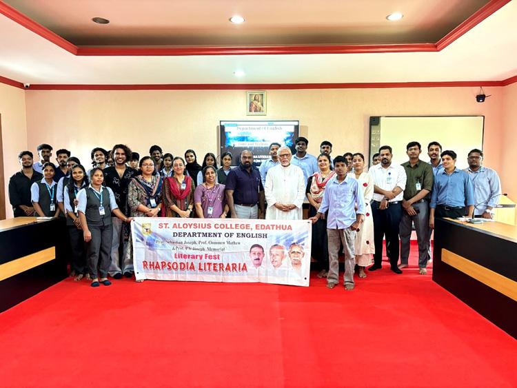 Very Rev. Fr. Manager, Fr. Philip Vaikathukaran unveiled the new website, and Principal Prof. (Dr.) Indulal G. released the logo of the forthcoming Rhapsodia Literaria 7.0, organised by the Department of English today.