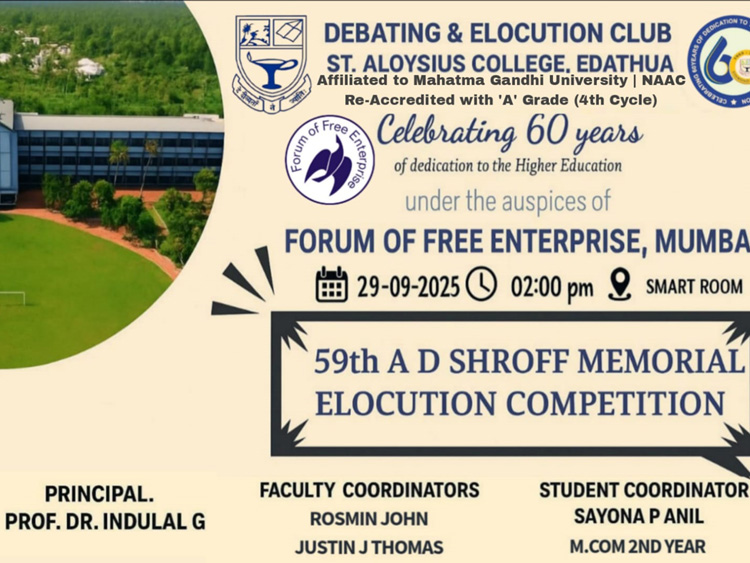 The Debating and Elocution Club of St. Aloysius College, Edathua, organized the 59th A. D. Shroff Memorial Elocution Competition today.