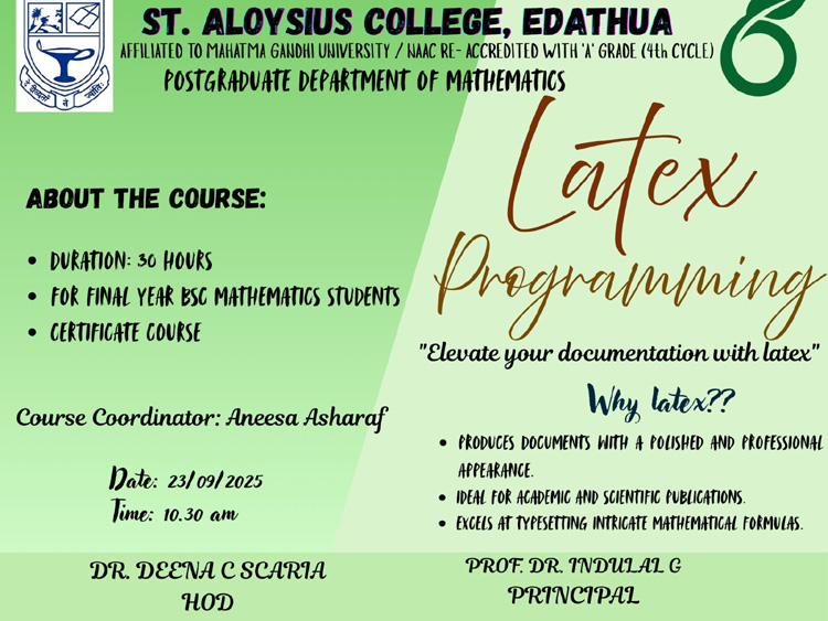 The activities of the Mathematics Association 2025-26 were inaugurated today by Smt. Jinu Mary Jameson, Assistant Professor of Mathematics, SB College, Changanassery.