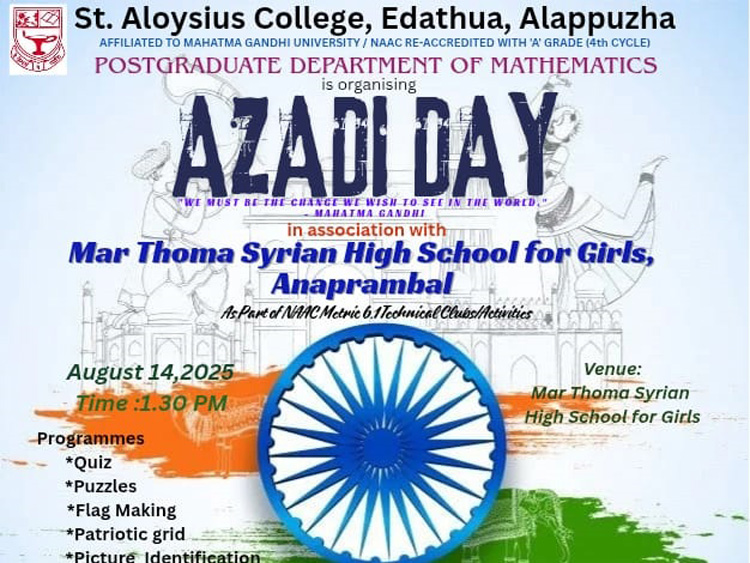 The Postgraduate Department of Mathematics, St. Aloysius College, Edathua, visited Mar Thoma Syrian High School for Girls, Anaprampal, as part of their extension programme Azadi Day and conducted an instructional workshop in Mathematics today.