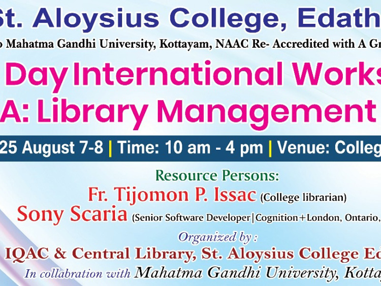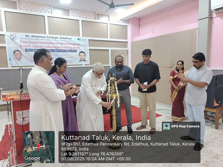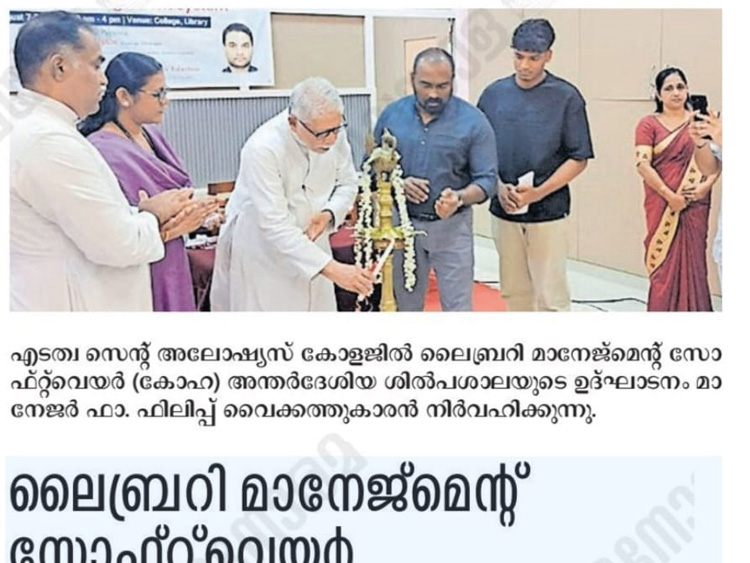 The inauguration of the Library Management Software (KOHA) International Workshop at St. Aloysius College, Edathua, was conducted by the Principal, Fr. Philip Vaikathukaran.