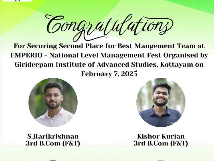 Hearty congratulations to Dev Sudha Chirayil and Kashyap Suresh who secured the first prize in the prestigious Prof. S. L. Thomas Physics Quiz Competition – The Pink Equation held at St. Berchmans College, Changanassery, on February 10, 2025.