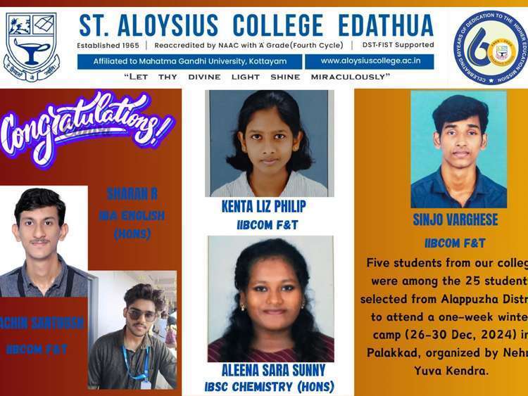 Five students from our college were among the 25 students selected from Alappuzha District to attend a one-week winter camp (26-30 Dec, 2024) in Palakkad