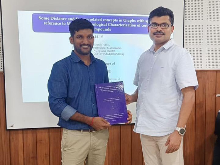 Congratulations to Dr. Salu S, alumnus of Department of Mathematics on the successful completion of his PhD in Mathematics from the University of Kerala, under the guidance of Prof. Dr. Bibin K. Jose., SD College, Alappuzha.