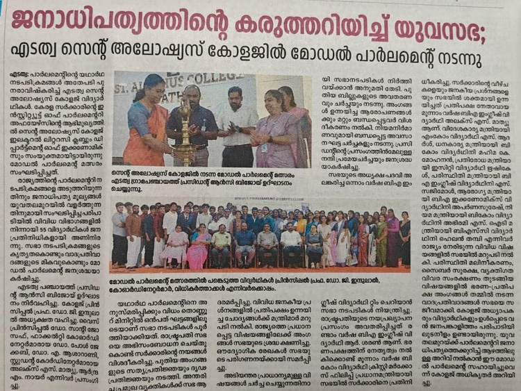 സെൻ്റ് അലോഷ്യസ് കോളജിൽ മോഡൽ പാർലമെൻ്റ്