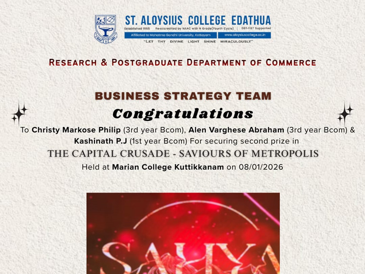 Congratulations to Christy Markose Philip (3rd year Bcom), Alen Varghese Abraham (3rd year Bcom) & Kashinath P.J (1st year Bcom)