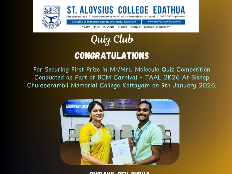 Quiz Club Congratulations For Securing First Prize in Mr/Mrs. Molecule Quiz Competition