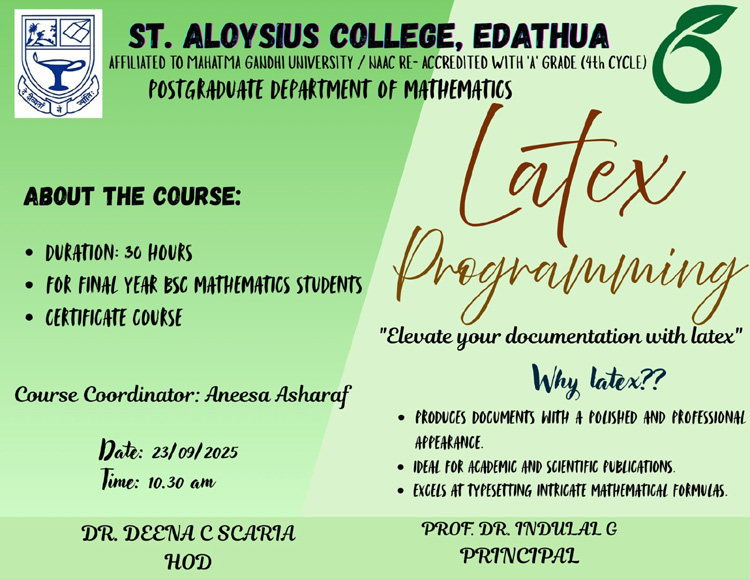 Home » Departments » Department of Mathematics – Profile » Activities » Certificate Course in LaTeX