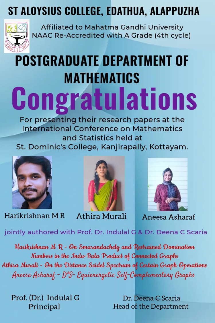 Home » Departments » Department of Mathematics – Profile » Activities » International Conference – Paper Presentation