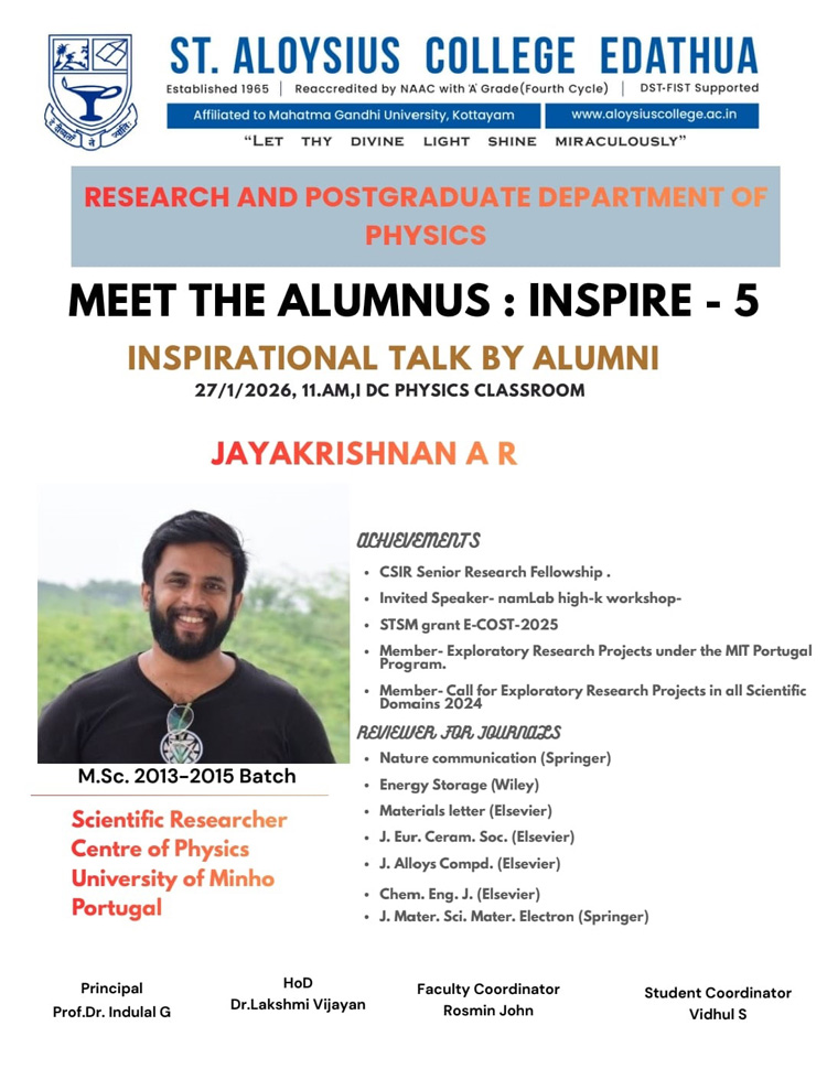 Home » Departments » Department of Physics – Profile » Activities » Meet the Alumnus : Inspire – 5