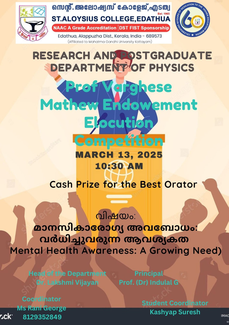 Home » Departments » Department of Physics – Profile » Activities » Prof. Varghese Mathew Endowement Elocution