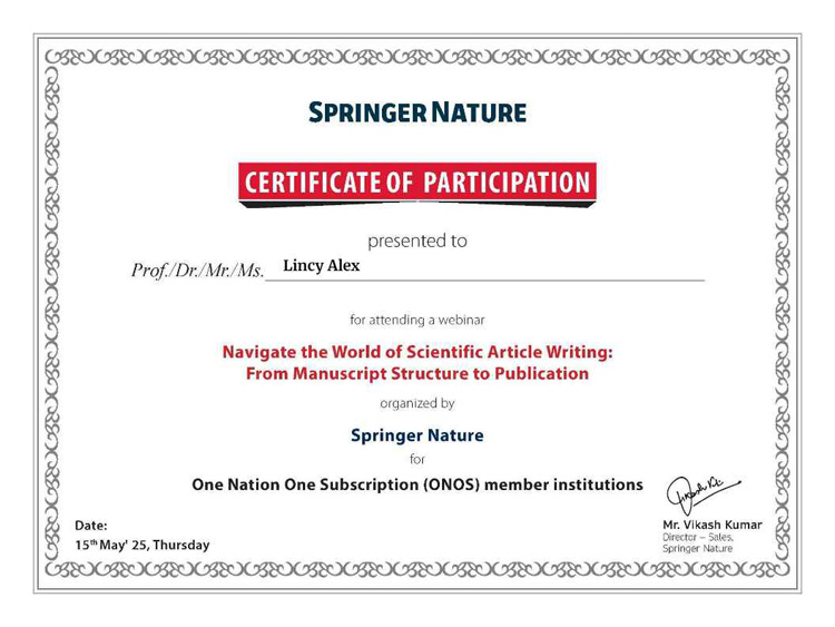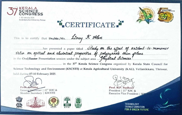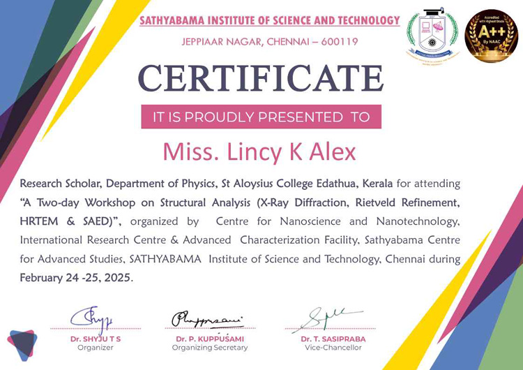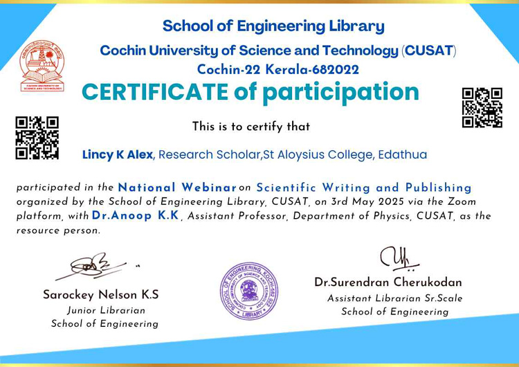 - Dr. Jochan Joseph and Dr. Lakshmi Vijayan are Research Guides at St. Aloysius College, Edathua under MG University, Kottayam
