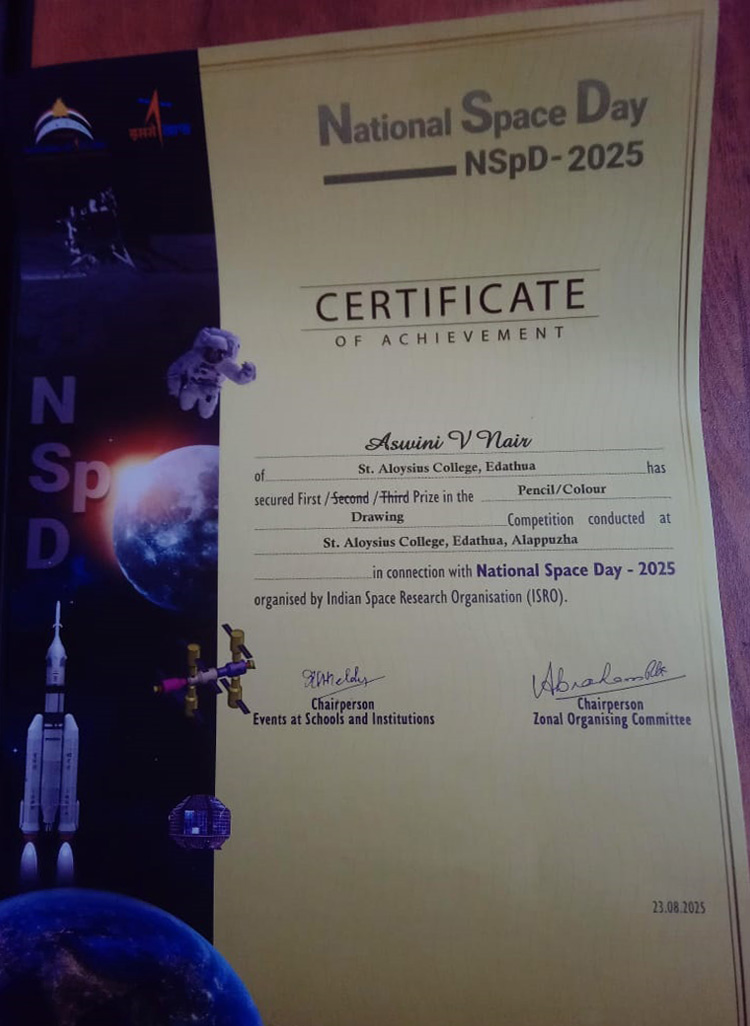 - Midhun G received Chief Minister’s Scholarship (Rs. 1 lakh) for outstanding performance in BSc Physics (2019-22)