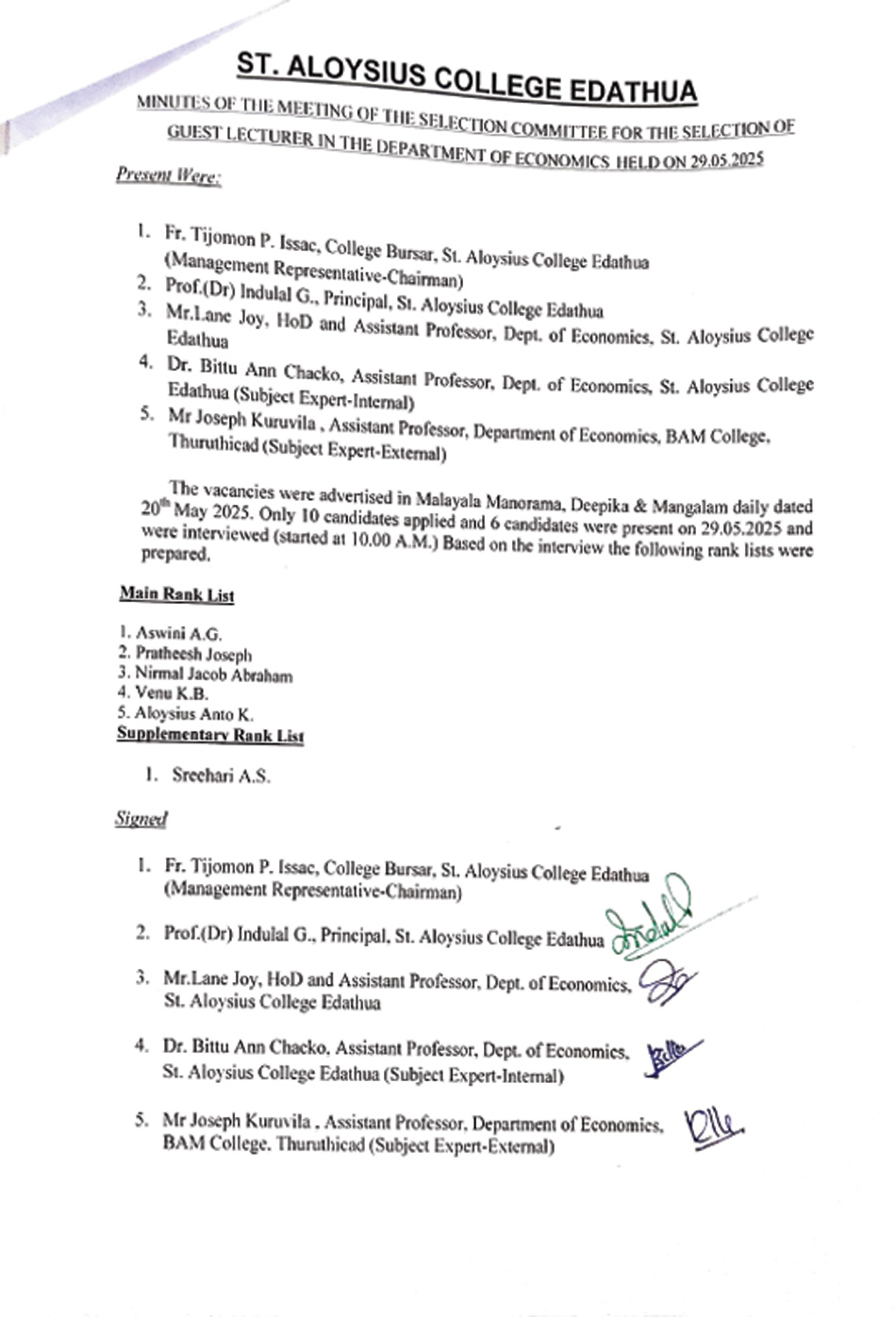 St. Aloysius College, Edathua, Alappuzha, Kerala, India