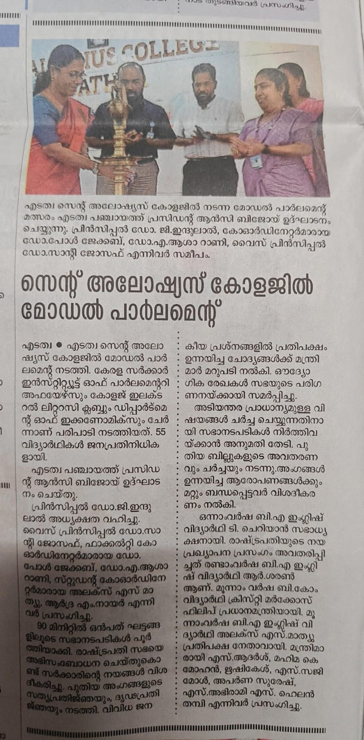 Home » സെൻ്റ് അലോഷ്യസ് കോളജിൽ മോഡൽ പാർലമെൻ്റ്