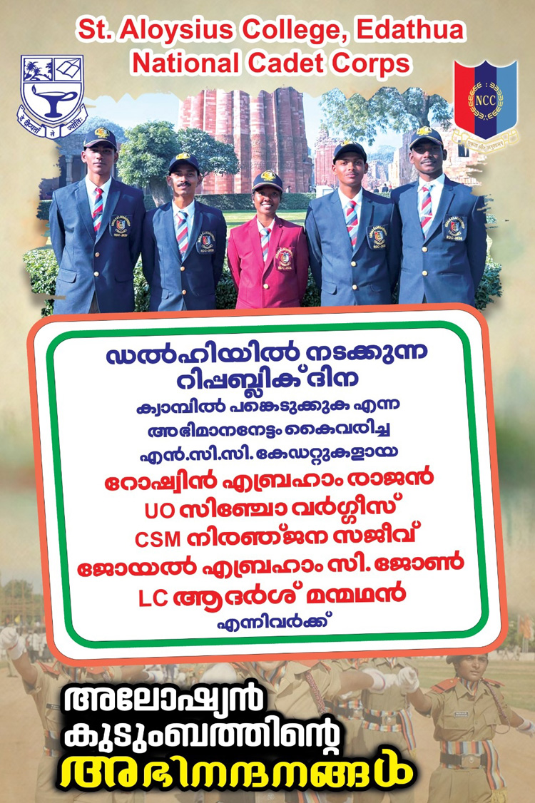 ന്യൂഡൽഹിയിൽ നടക്കുന്ന റിപ്പബ്ലിക് ദിന ക്യാമ്പിൽ (RDC)🇮🇳 പങ്കെടുക്കാൻ യോഗ്യത നേടിയ സെന്റ് അലോഷ്യസ് കോളേജിലെ എൻ.സി.സി കേഡറ്റുകളായ: