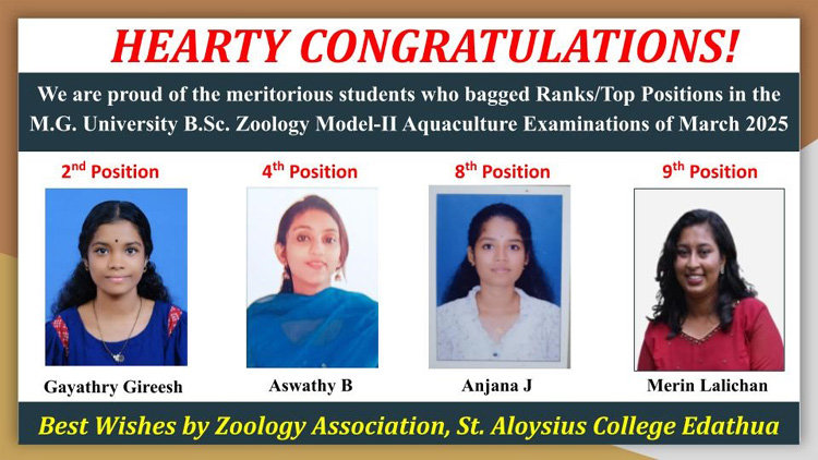 Our B.Sc. Zoology students have secured the 2nd, 4th, 8th, and 9th ranks in the B.Sc. Zoology Examination 2025
