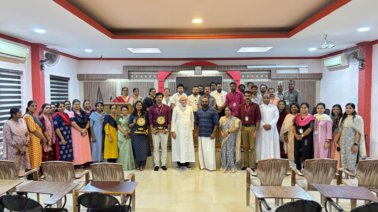 Today (4.7.25), the Staff Association convened a meeting to felicitate Dr. Deena C. Scaria, Assistant Professor and Head of the Department of Mathematics, and Dr. Jijo Joy, Assistant Professor, Department of Mathematics, on the successful completion of their Ph.D. Very Rev. Fr. Manager graced the occasion with his esteemed presence.